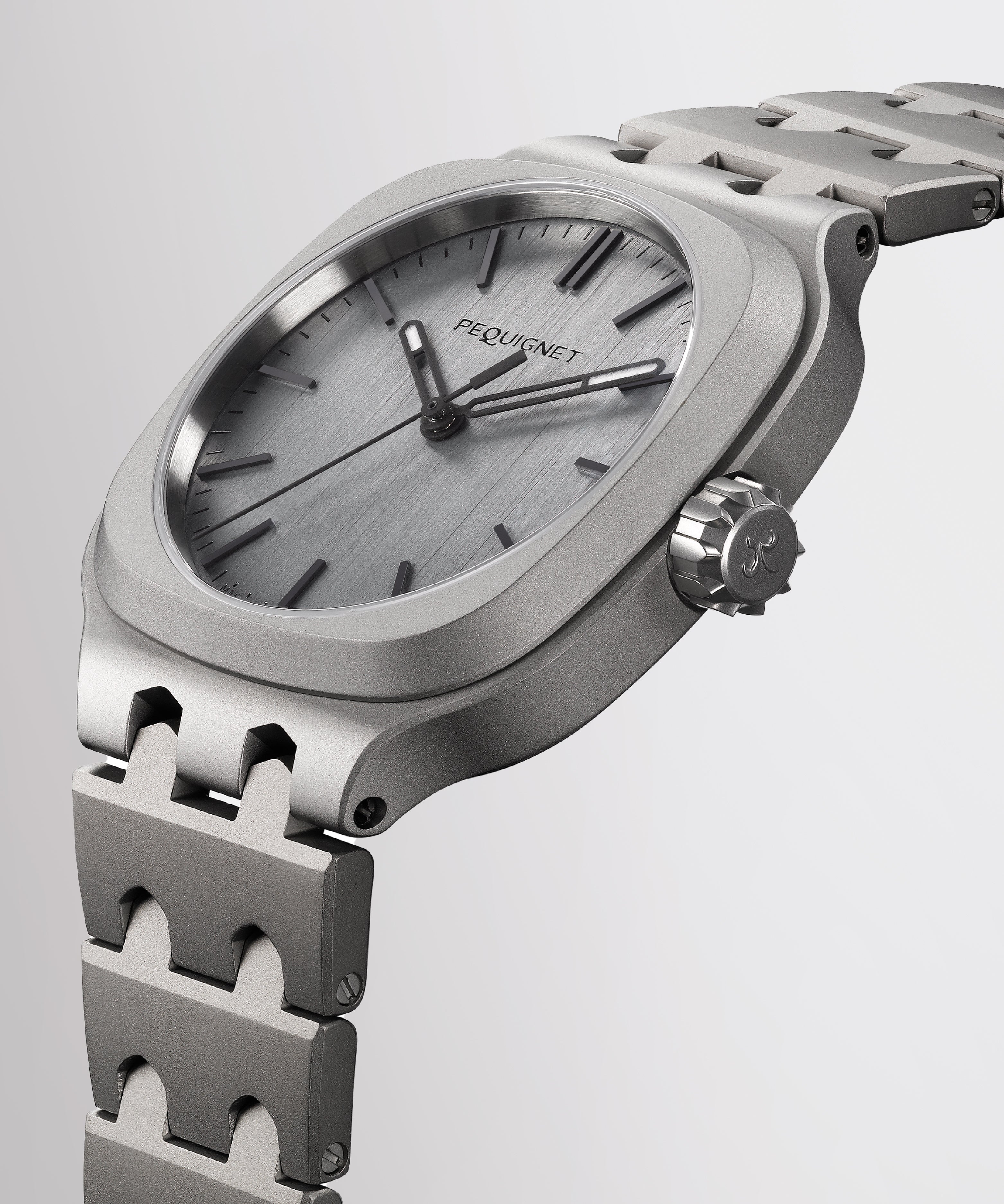 It is powered by the Calibre Initial®, the third Manufacture movement designed by Pequignet. For attention to detail, this movement has been specially treated with Ruthenium to match the colour of the titanium as closely as possible.
