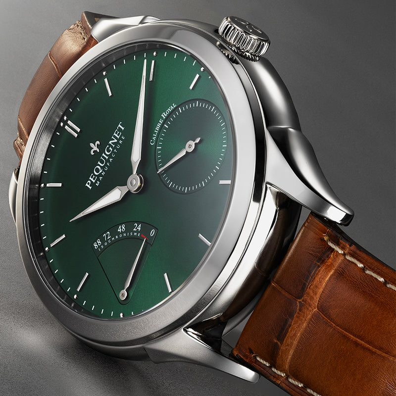 Elegant and refined, the watches in the Royale collection are equipped with two French movements conceived and developed by the Pequignet Manufacture in France: the Calibre Royal® and the Calibre Initial® (36mm version).