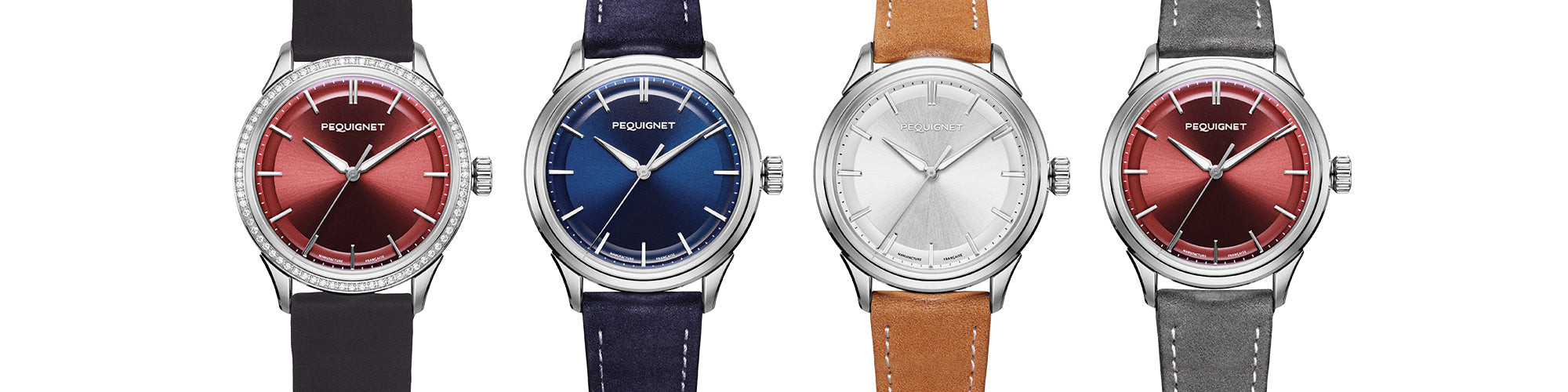 Elégantes et raffinées, les montres de la collection Royale sont équipées de deux mouvements français conçus et développés par la Manufacture Pequignet en France, le Calibre Royal®