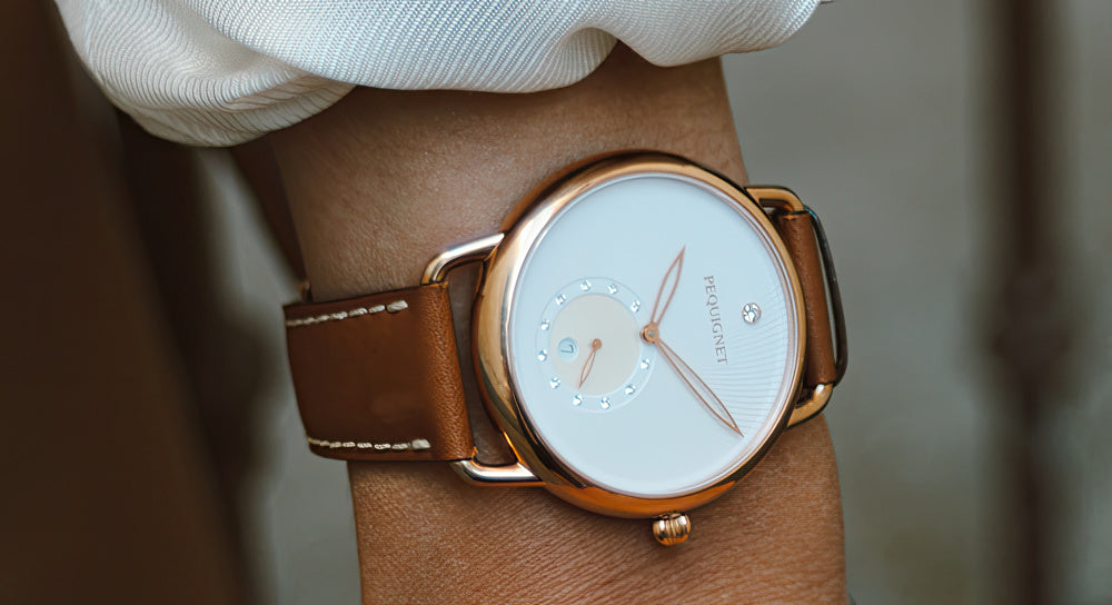 L’étanchéité d’une montre est susceptible de se dégrader avec le temps. Lors du porté, la montre est quotidiennement soumise à différentes agressions pouvant varier d’un porteur à un autre (chocs plus ou moins violents, sueurs, changement brutal de température, eau de mer, eau de piscine, etc). Ces éléments influent sur le vieillissement prématuré des joints d’étanchéité. C’est pourquoi il est nécessaire de faire vérifier régulièrement l’étanchéité de votre montre par un revendeur Pequignet agréé.