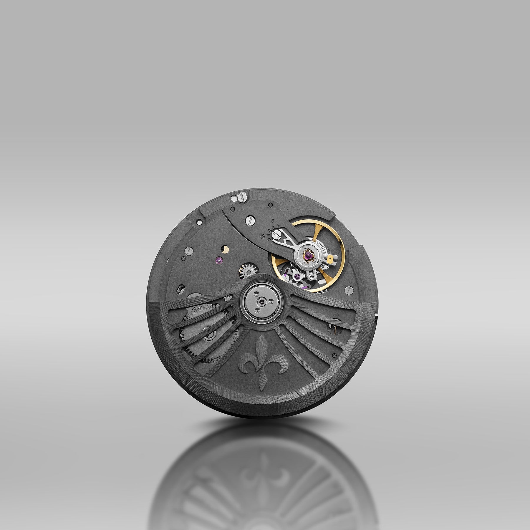 Elle est animée par le Calibre Initial®, troisième mouvement Manufacture conçu par Pequignet. Par souci du détail, ce dernier a été traité spécifiquement en Ruthénium pour se rapprocher au plus près de la couleur titane.