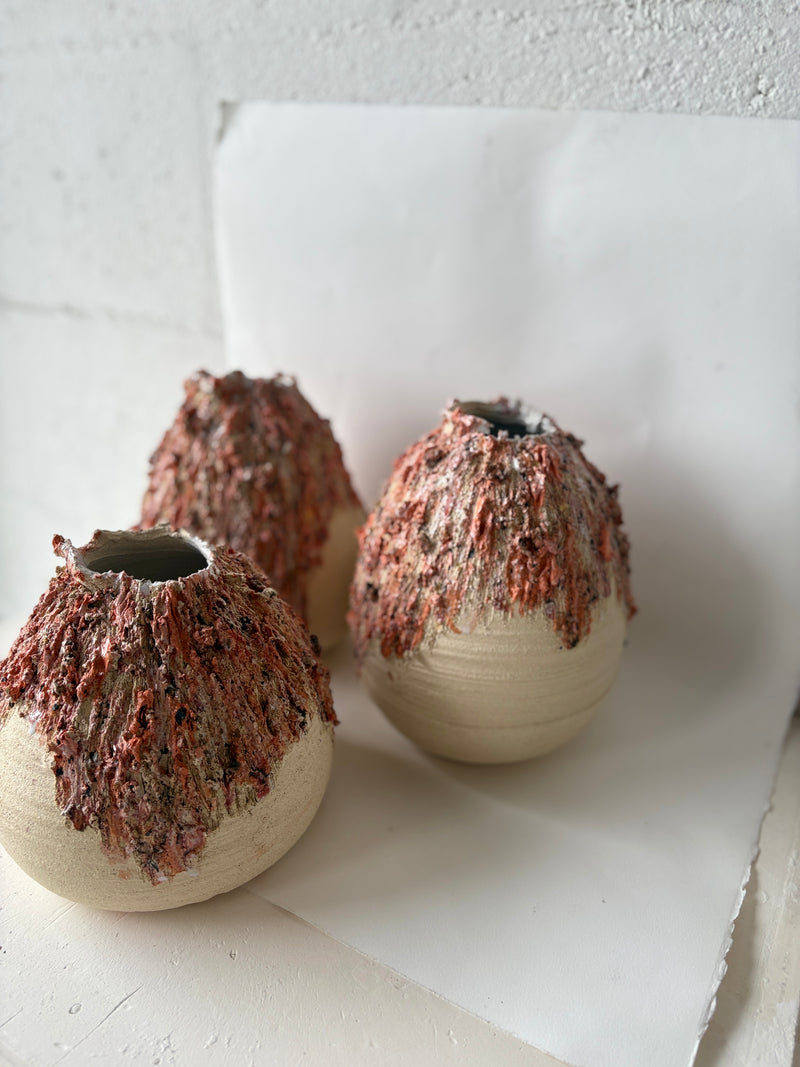 Silène’s work thrives on instinct and spontaneity. Free from preconceived ideas or rigid constraints, she allows her creative process to be guided by what she affectionately calls “happy accidents.” Her ceramics embody movement, texture, and authenticity, inviting the audience to embrace imperfection and celebrate the beauty found in the unexpected.