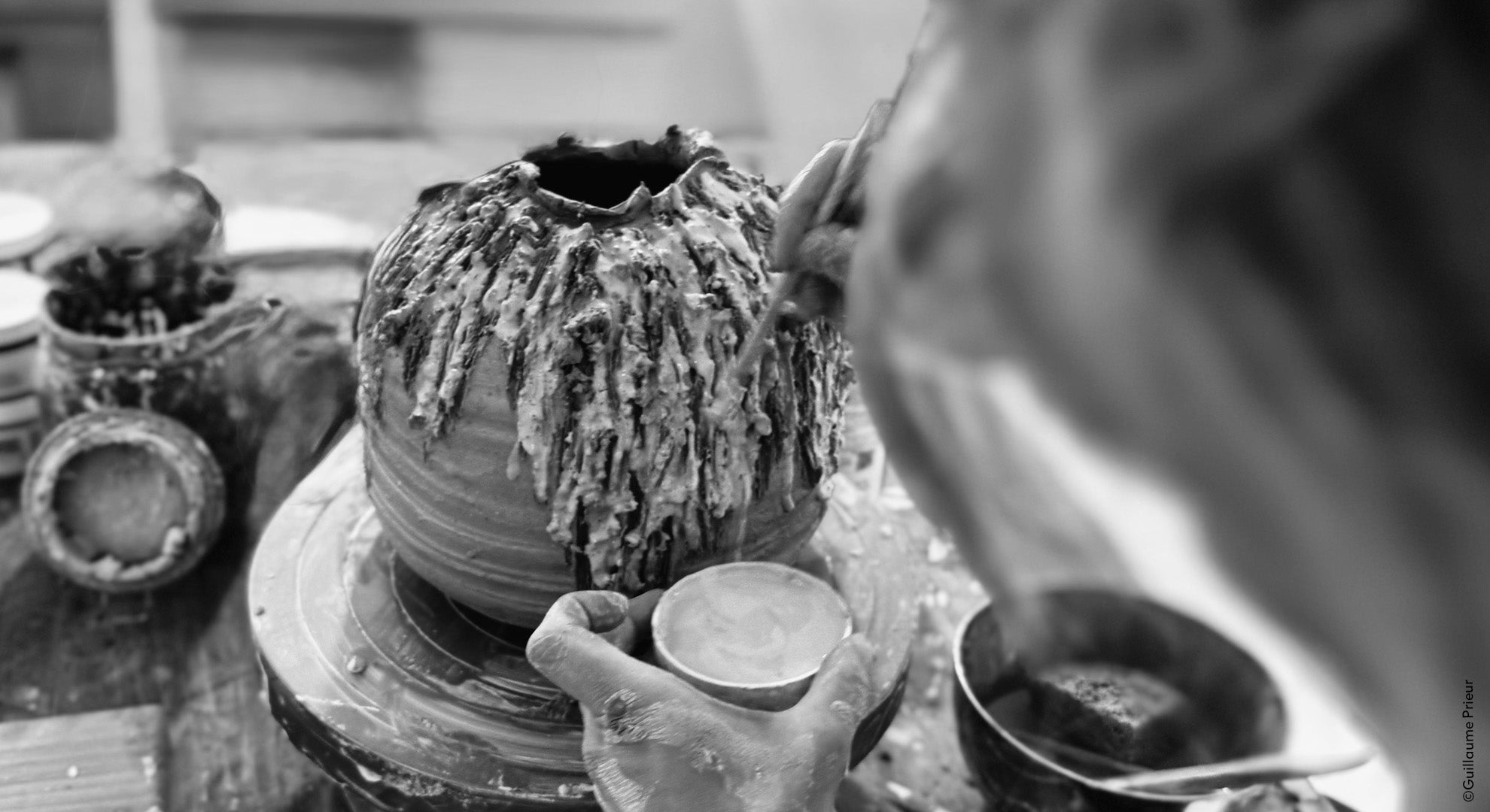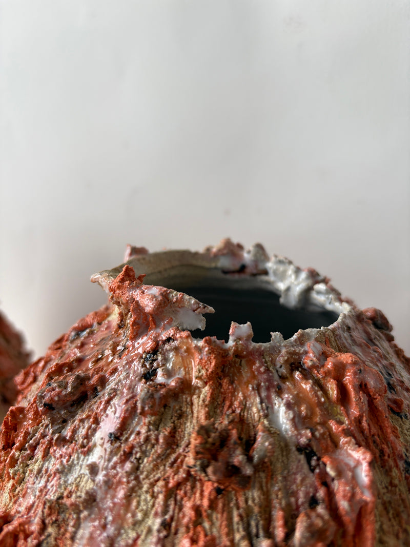 The name of this collection perfectly reflects the joyful thrills experienced during the creation and discovery of the pieces, at the moment they emerge from the kiln. The work with material and textures on these wheel-thrown forms—somewhere between the Japanese Tsubo and the Korean Moon Jar—marks the starting point of this creative exploration, guided above all by a simple yet essential principle: following one’s joy.
