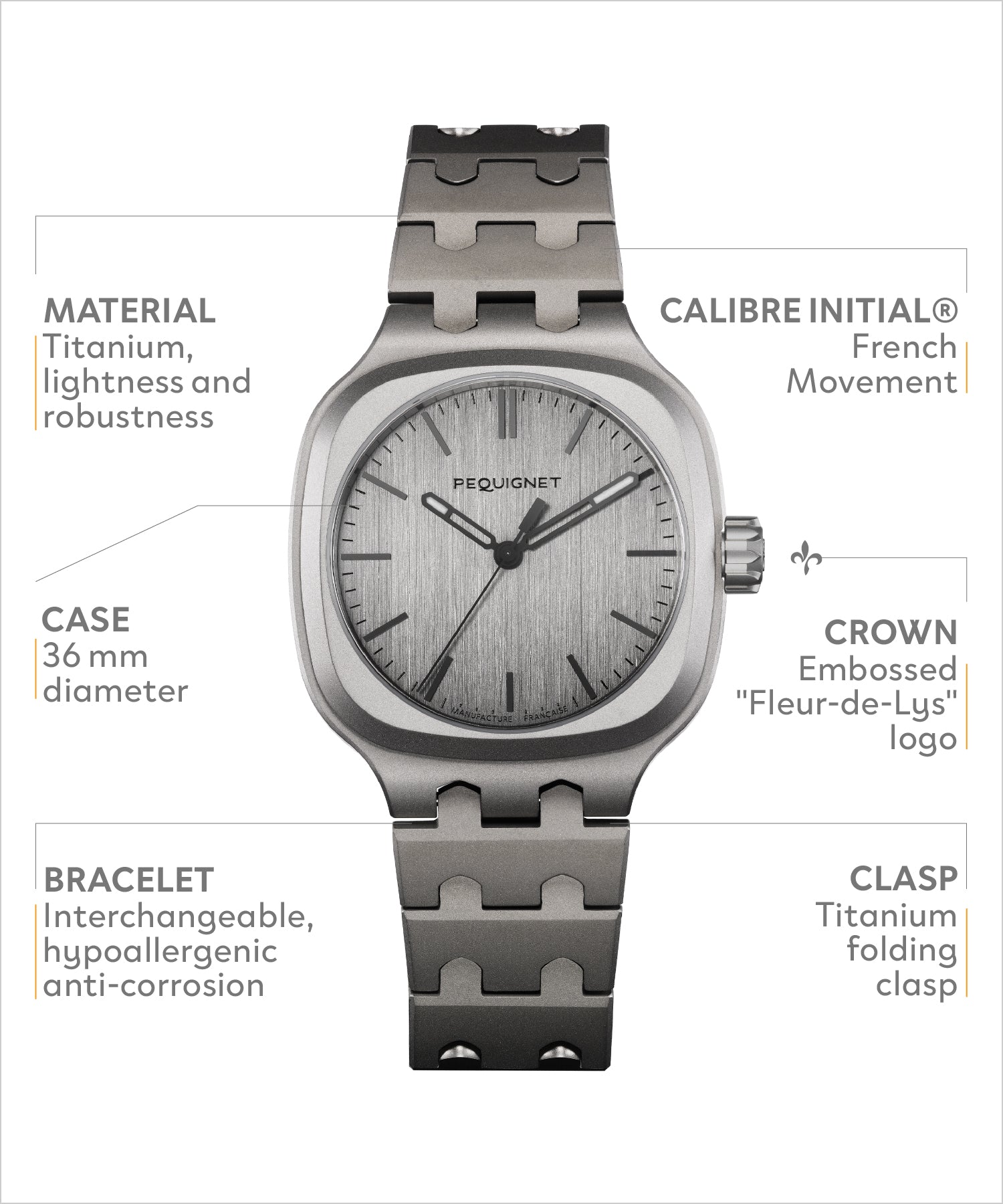 It is powered by the Calibre Initial®, the third Manufacture movement designed by Pequignet. For attention to detail, this movement has been specially treated with Ruthenium to match the colour of the titanium as closely as possible.